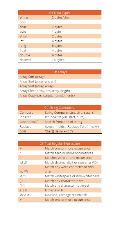 Learn C-Sharp coding tutorial guide. C# is one of the fastest growing software codes. Step by step cheat sheets, forms, arrays, functions. Easy to follow C sharp training reference for students, teachers, web developers, software engineers and coders.
