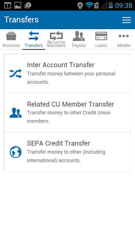 - 당신의 신용 조합 계정 간의 전송 자금