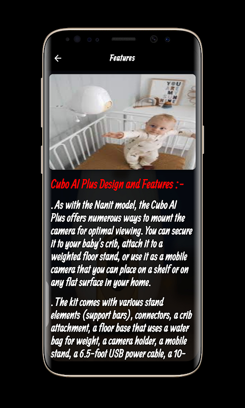 The Cubo Ai Plus Camera Guide application contains many information and specifications for the Cubo Ai Plus Camera, which you can view clearly and easily. The Cubo Ai Plus Camera is a baby monitor, so you can now be reassured about your child during the sleep through Cubo Ai Plus Camera which is connected with your mobile phone