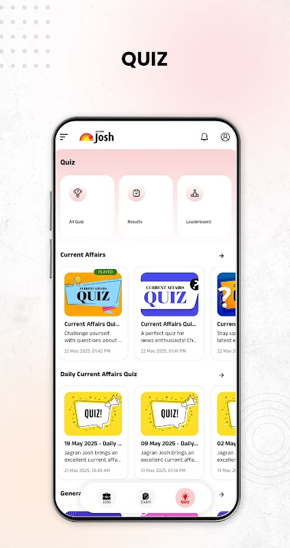 JagranJosh 교육 부문 1위 사이트: 최신 시사 문제 및 GK 앱은 최고의 평가를 받았으며 구직자를 위한 인도 최고의 애플리케이션입니다. 앱은 100% 정통하고 검증된 일일 시사 문제 및 GK 시험을 제공합니다.
