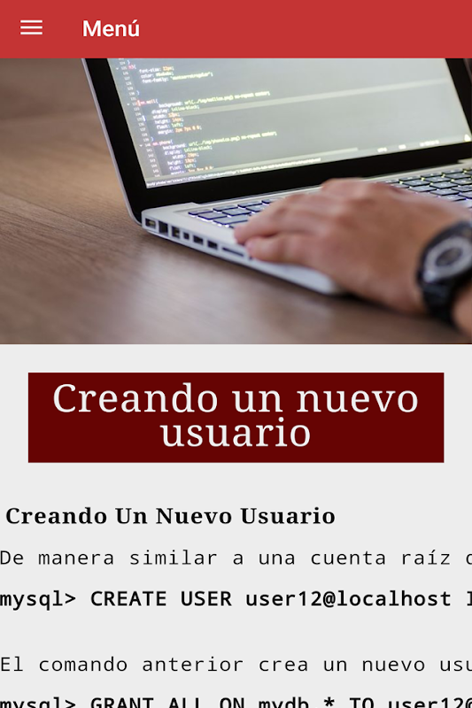 "과정: 처음부터 SQL 배우기" 앱은 빠르고 이해하기 쉬운 스페인어 매뉴얼로 구성되어 있으며, 이를 통해 필요할 수 있는 프로젝트에 대한 데이터베이스를 만드는 방법을 배울 수 있습니다. SQL은 고급 계산을 수행할 수 있는 기능이 있는 데이터베이스에서 데이터를 조작하고 다운로드할 수 있는 프로그래밍 언어 유형입니다. 데이터베이스에 데이터를 저장하는 대부분의 회사에서 사용됩니다.