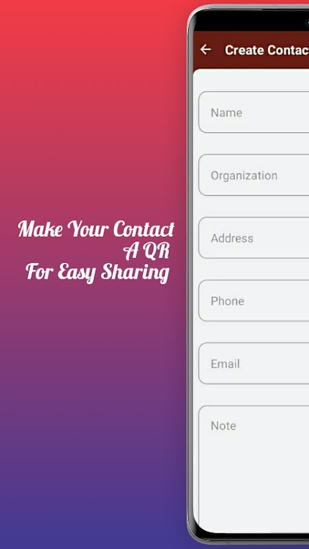 *Contact:You can convert a Contact information (Name,organisation,Address,Phone,Email & Note etc.) of a Person to QR Code.