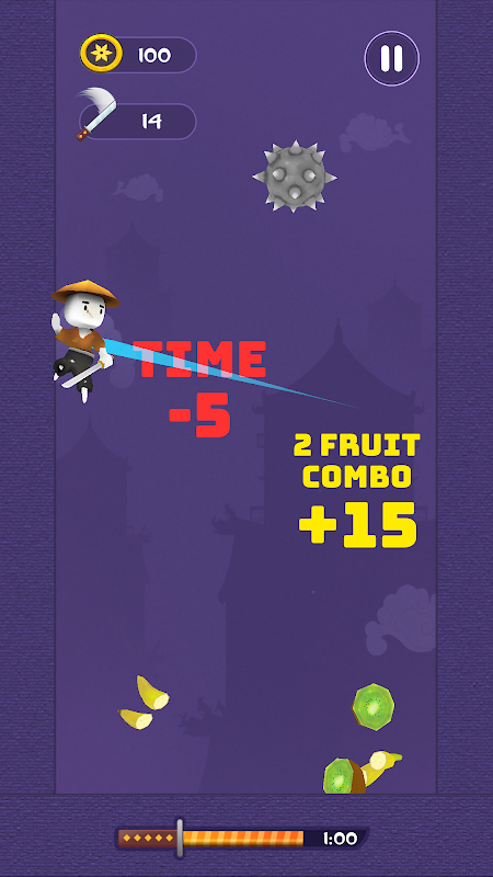 "시간" 모드에서는 1분 30초 동안 최대한 많은 수의 과일을 자르기 위해 모든 민첩성과 정확성을 보여줄 수 있습니다. 기록을 경신하고 더 높은 점수를 얻으려고 노력하면서 정맥을 통해 흐르는 아드레날린을 느껴보세요.