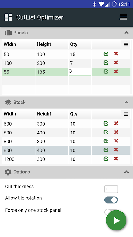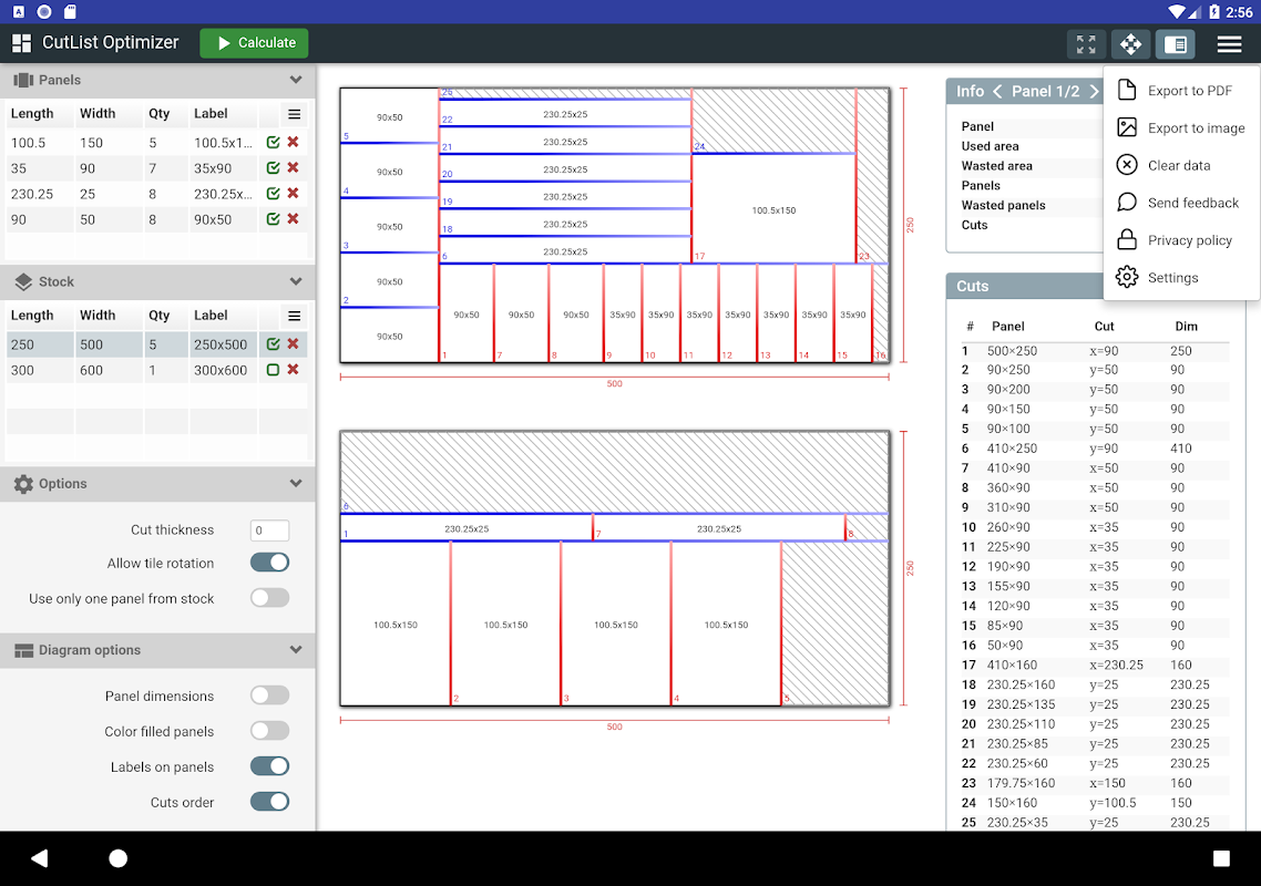 CutList 최적화 패널 절단 최적화를 대상으로하는 응용 프로그램입니다.