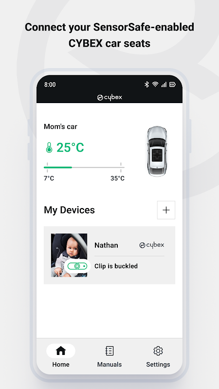 안전벨트 시스템에 부착된 SENSORSAFE 클립은 앉은 어린이의 안전과 건강에 대해 항상 정보를 제공합니다. CYBEX SENSORSAFE는 위험한 상황을 예방하는 데 도움이 되는 필수 경고를 제공합니다. 아이가 차 안에 방치되었을 때, 클립 자체가 풀렸을 때, 차량 주변 온도가 너무 덥거나 추울 때, 아이가 앉았을 때 너무 오랫동안. 모든 경고는 설치 지침, 사용 방법 비디오, FAQ 등을 제공하는 이 앱을 통해 Bluetooth를 통해 스마트폰으로 직접 수신됩니다.