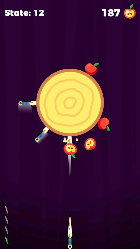Try to hit the apples on the target to have blades with 20 special designs that are different from each other, and do not forget to collect daily prizes!