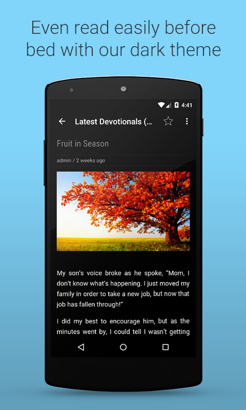 It's essential for us as Christian's to take a time of daily devotions every day to connect with God and read his daily gospel. With the free daily devotional provided for you, this app will help you to do just that! And this free app is ready to adjust your daily devotions to the way you like it with loads of features that will make your daily devotional personal for you.
