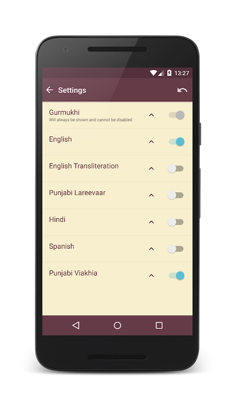 ● 여러 언어 - 구어 무키, 펀 자비, 영어, 힌디어 및 스페인어로 hukam을 볼 수 있습니다.