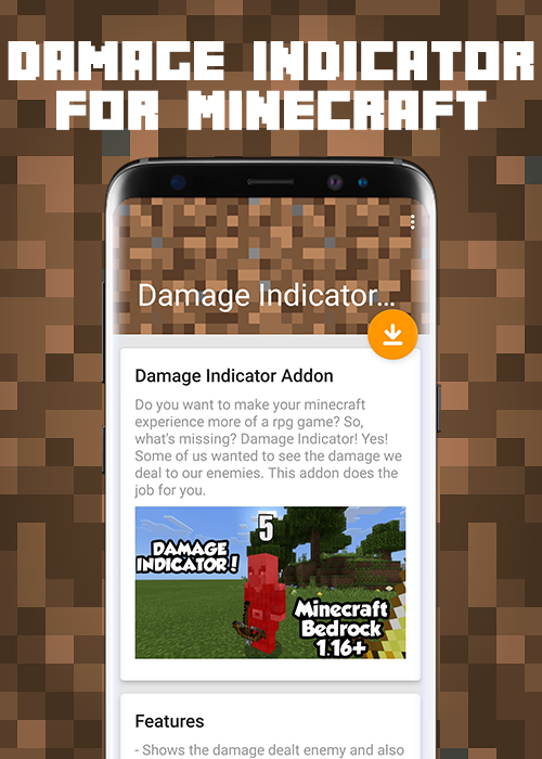 Minecraft PE용 Damage Indicator Mod는 Minecraft Pocket Edition 게임에 "Damage Indicator Addon"을 빠르고 쉽게 설치할 수 있는 응용 프로그램입니다. 한 번의 탭으로 Minecraft 애드온, 모드, 지도, 텍스처 및 스킨 팩을 다운로드, 설치 및 활성화할 수 있는 원클릭 설치 프로그램 덕분에!