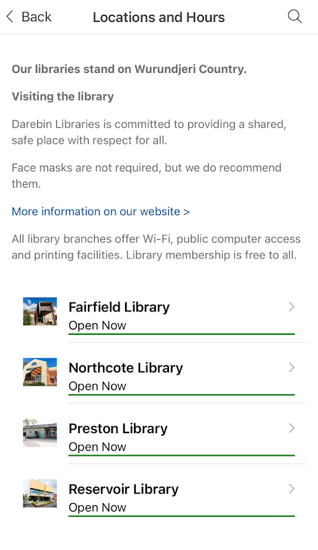 Android 휴대 전화 나 태블릿에서 Darebin 라이브러리.