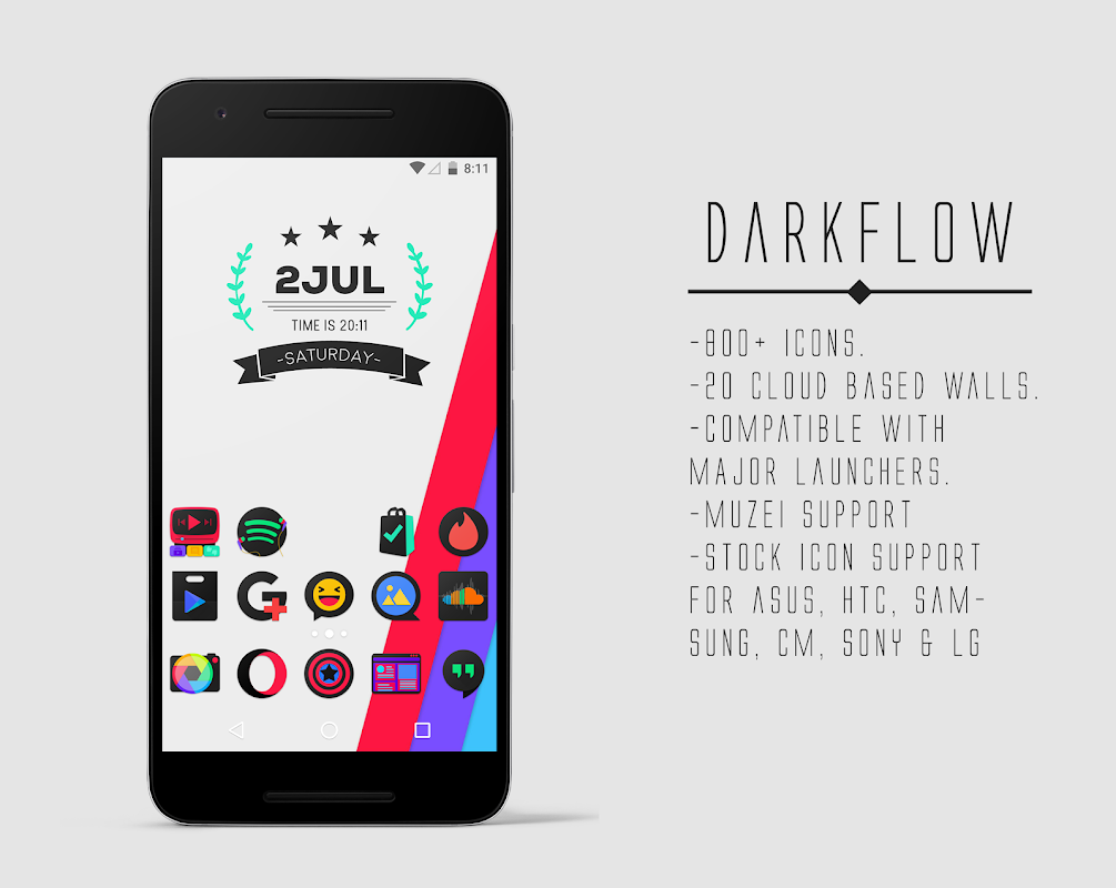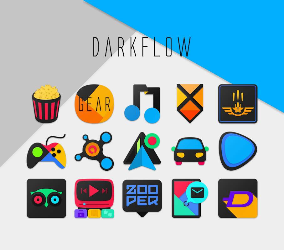 DarkFlow는 어두운 악센트 팔레트와 아이콘의 독특한 설정이다. 이 어두운 소재 디자인했을 것입니다.