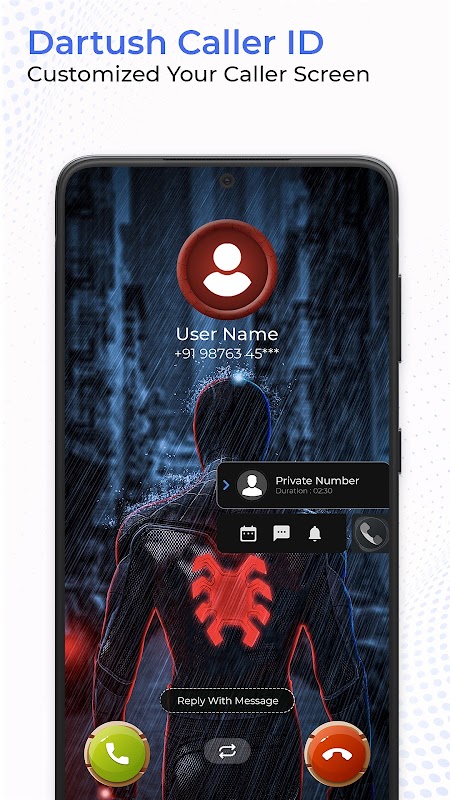 Dartush는 수신 및 발신 전화에 대한 사용자 정의 스타일 화면을 제공하고 놀라운 통화 테마, 발신자 ID, 고품질 경험 및 기타 개인화된 전화 설정을 제공합니다.