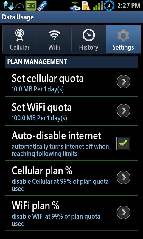 ✔ 별도의 셀룰러 및 Wi-Fi를 청구주기 및 할당량 설정