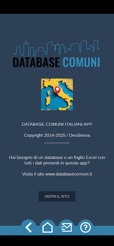 이탈리아 지방자치단체 데이터베이스 앱은 다음을 포함하여 거의 8000개에 달하는 이탈리아 지방자치단체에 대한 대부분의 정보를 보고합니다.