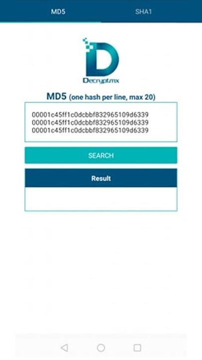 Descrypt.mx는 제출 된 MD5 SHA1 해시의 일반 텍스트를 공개하려고 시도합니다.