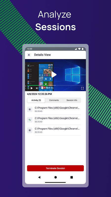 * 라이브 및 녹화된 세션 모니터링: 라이브 세션을 모니터링하고, 활동 로그를 검토하고, 필요한 경우 세션을 종료합니다.