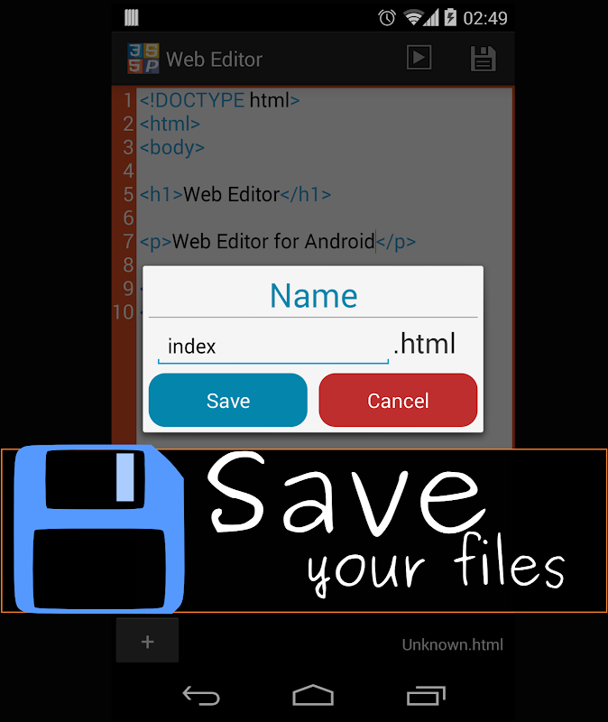 https://play.google.com/store/apps/details?id=me.testica.webeditor