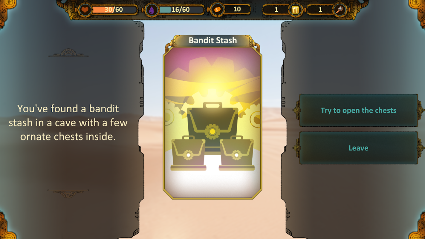 A new rogue-lite steampunk tarot inspired adventure! Let fate guide your choices and luck be your ally while wandering the desert wasteland.