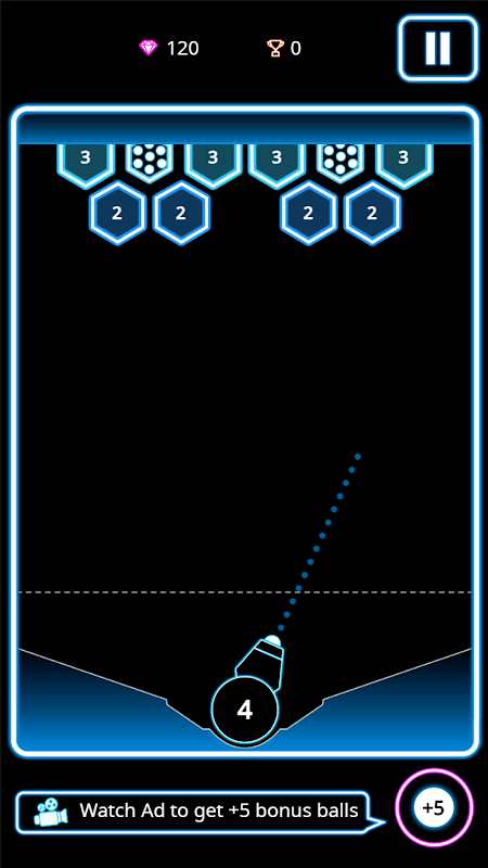 This is an interesting puzzle game. In the game, you need to control the launch ball to collide and eliminate the number hexagon above it. Simply eliminate all of them to pass the level. Now, come and challenge yourself.