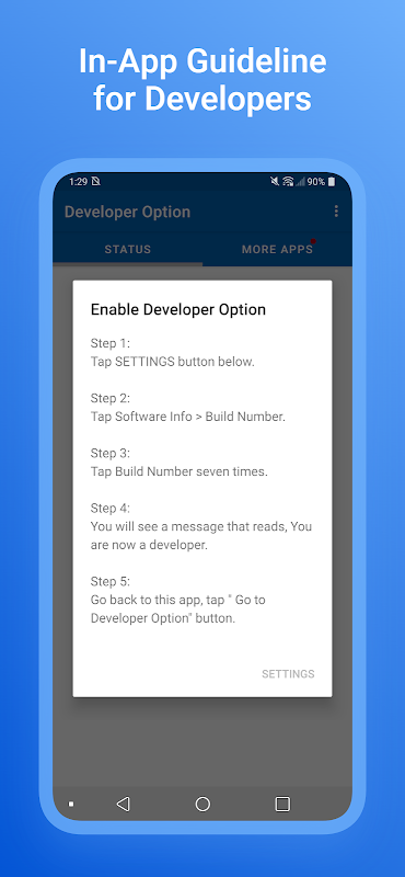 개발자 옵션은 개발자 옵션을 활성화하는 데 도움이 되는 Android 애플리케이션입니다. 안드로이드 개발자라면 꼭 받으세요!