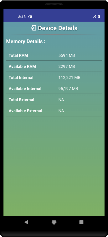 CPU 세부 정보 : 휴대 전화 또는 태블릿의 중앙 처리 장치와 관련된 정보는 앱의이 구성 요소, CPU 직렬, CPU 모델, RAM 사용량, ABI, CPU 변형, 직렬, CPU 구현 자, CPU 포트, CPU 개정과 같은 CPU 정보에 의해 표시됩니다. , 하드웨어 모델 등