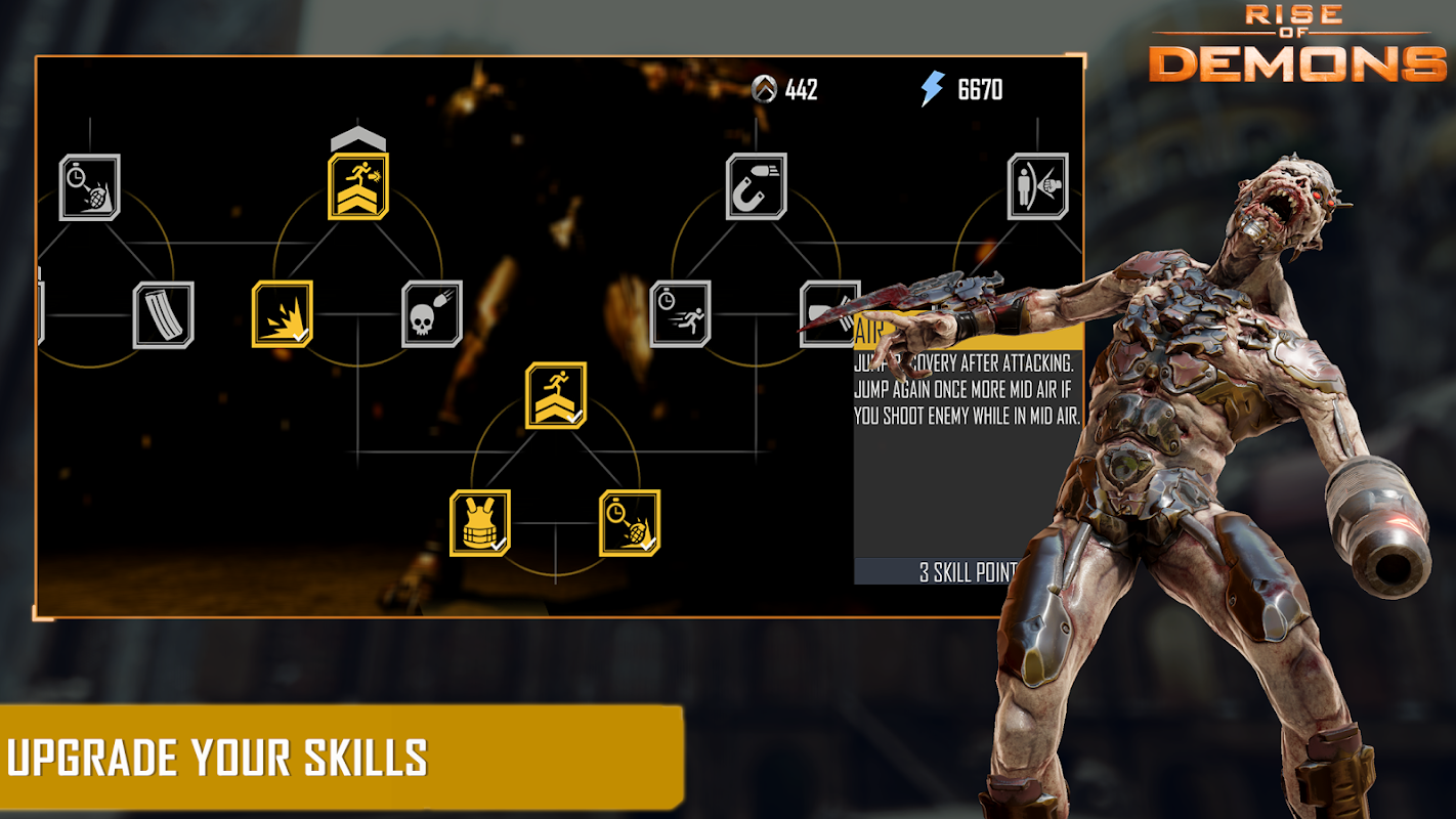 With unique & exhaustive SKILLTREE, upgrade your skills and master your kills. New skills ranging from mid air jumps to increased damage at full armor, we have got you covered.