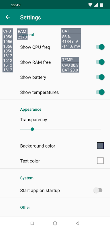 - GPU 로드, 주파수(qcom, exynos, 일부 mtk의 경우, 대부분의 장치는 루트에서만 작동함)