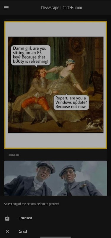 코드 유머는 프로그래머 세계와 관련된 밈이 있는 앱인 Developers Escape의 초점입니다. 바이너리를 이해하는 사람들은 이 장소가 유용하다는 것을 알게 될 것입니다. 확인 해봐 :)