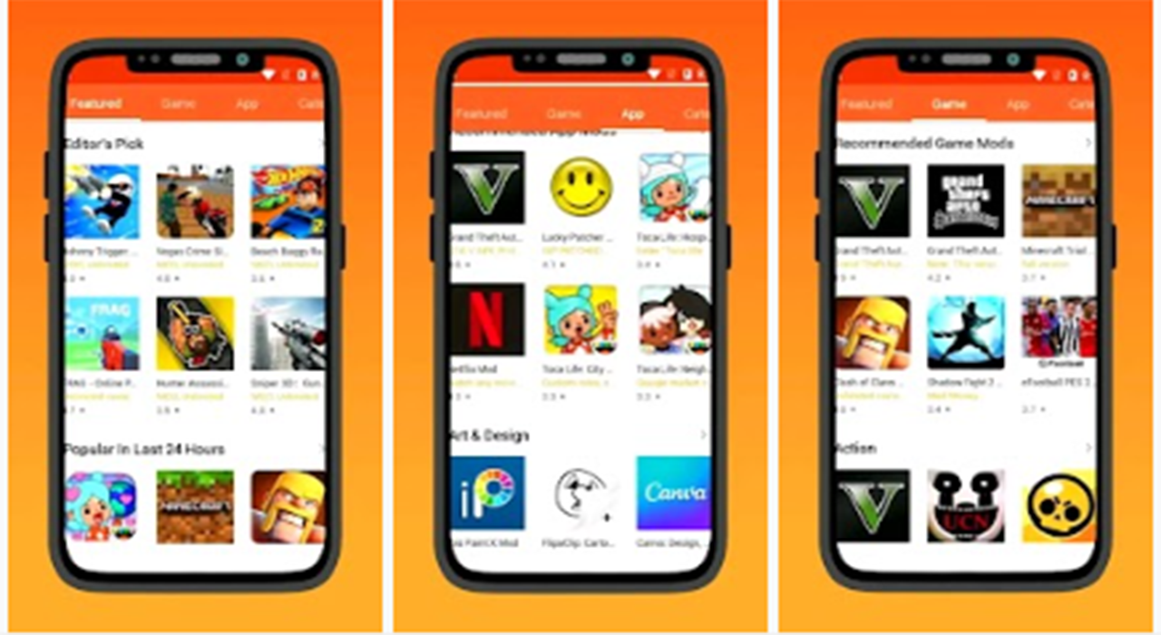 shows you different tabs and menus to help you to quickly filter your search, looking for trending apps.