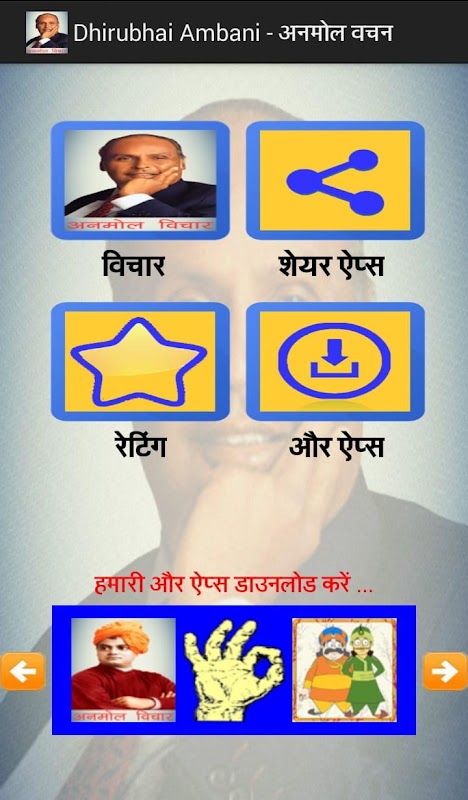 Dhirubhai Ambani अनमोल विचार Application 100% free he.