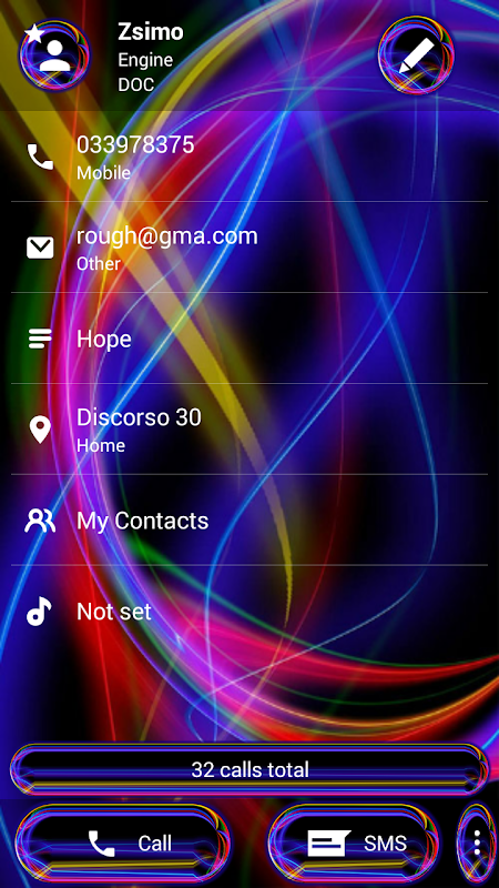 그것은 당신의 전화 다이얼 패드를 소용돌이 치는 조명으로 장식 된 인터페이스와 키와 함께 검은 색과 여러 가지 빛깔의 네온으로 현대적인 모습을 줄 것입니다.