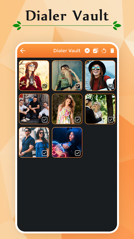 An amazing way to hide your all files with our best one and only Dialer Vault app. Dialer Vault-Hide Photo & Video, Gallery Lock can help you to hide any app, Images, files easily in your smart device. Easily hide your images, files or many more which is private for you in Dialer Vault app. Open all hidden files in Dialer Vault in your phone secretly or app also provides hidden picture function, import your images into hiding gallery easily.