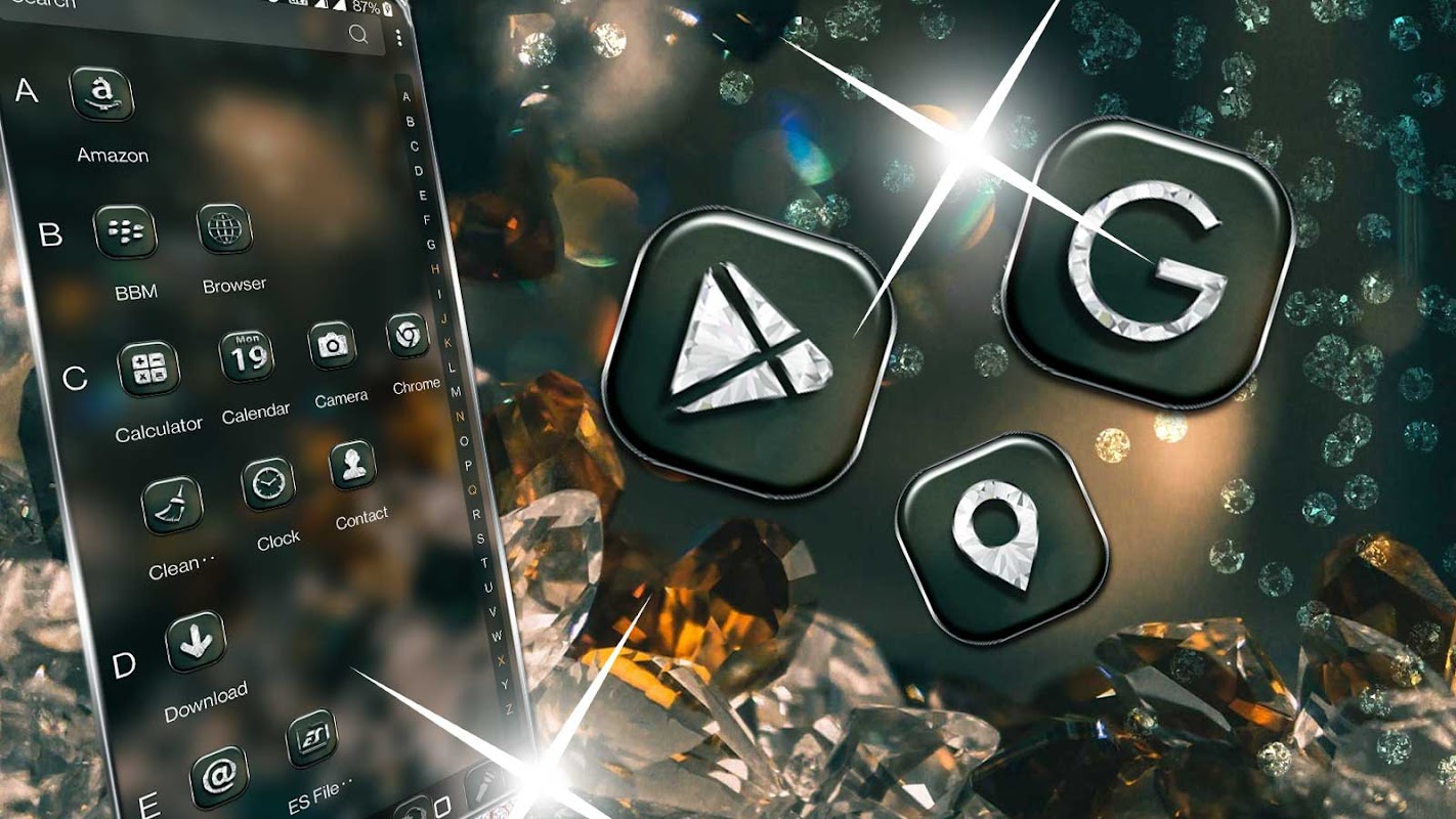 맞춤형 앱 아이콘 - 다이아몬드 테마 배경화면과 일치하는 사전 설치된 앱의 새로운 아이콘 세트입니다.