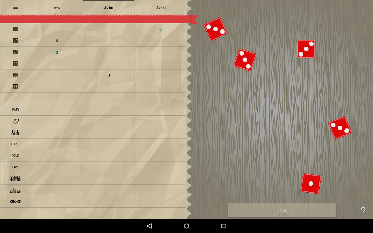 회사에 대한 두 개의 주사위 게임 : 1000 (한 수천) (다소 주사위 게임 빙고 등) 포커 하나의 장치 6 명까지 온라인 경기 4 명까지. 또한 안드로이드에 대해 재생할 수 있습니다. 응용 프로그램에서 예제와 함께 게임 규칙의 설명을 확장했다. 초보자를위한 도움말 버튼이 있습니다.