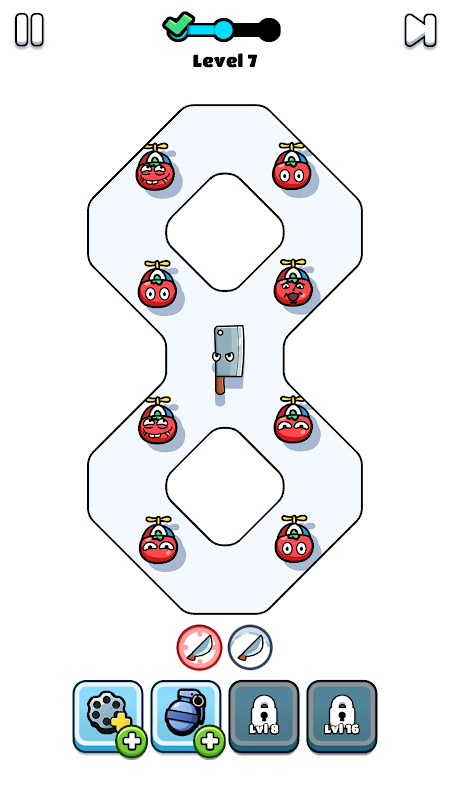 목표는 간단합니다. 화면을 가득 채우려는 토마토들을 칼로 베어내고, 다양한 퍼즐 기믹을 활용하여 전략적으로 토마토들을 무찌르세요!