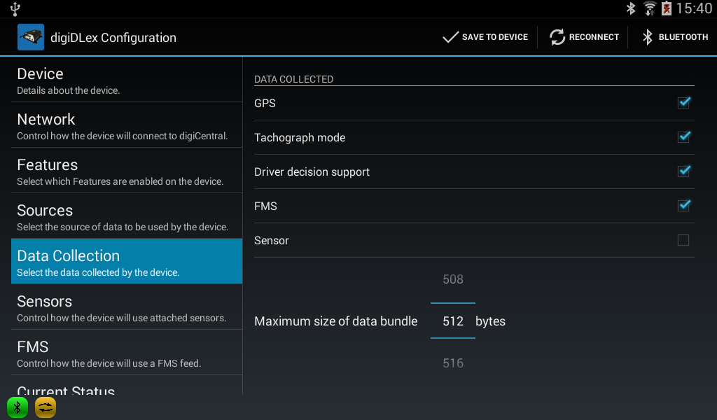 블루투스 연결을 통해 Tachosys digiDLex 장치를 구성합니다.