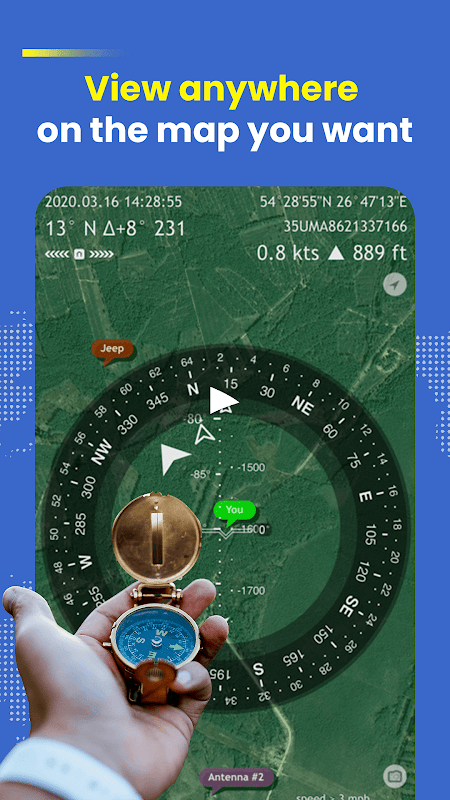 🗺 나침반 지도: Google 지도 지도에서 내가 서 있는 실제 위치(LatLng)를 표시하는 데 도움이 됩니다.