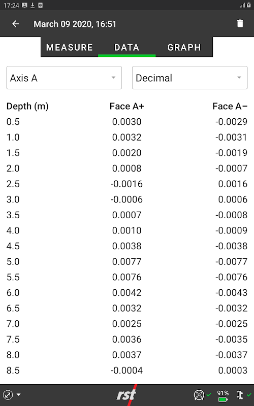 RST Instruments 경사계 레코더 및 뷰어.