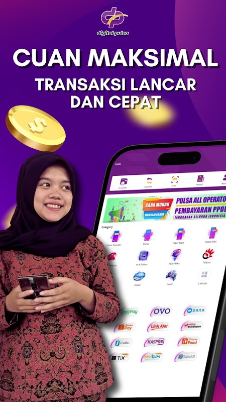 DIGITAL PULSA는 신용, 데이터 패키지, PLN 토큰, 데이터 상품권, 게임 상품권 및 PPOB 사업을 경쟁력 있는 가격으로 하고 싶은 분들을 위한 솔루션으로 재판매하거나 직접 사용할 수 있습니다.