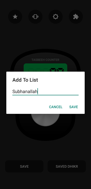 당신은 dhikrs, 날짜의 수와 저장 버튼을 눌러 dhikrs의 이름으로 당신의 dhikrs을 절약 할 수 있습니다. 당신은 t 디지털 tasbeeh 카운터 응용 프로그램은 당신에게 진동 경고를 줄 것이기 때문에, 화면을 확인해야 돈 '. 버튼 및 펄스 버튼을 절약, 카운터 버튼 : 디지털 Tasbeeh 카운터는 세 가지 기본적으로 버튼이 있습니다.