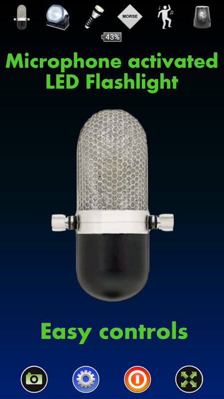응용 프로그램은 같은 많은 모드가 있습니다; 디스코 조명, 손전등, 스트로브 빛, 모스, 흔들어 - 그것, 경찰 조명과 문구.