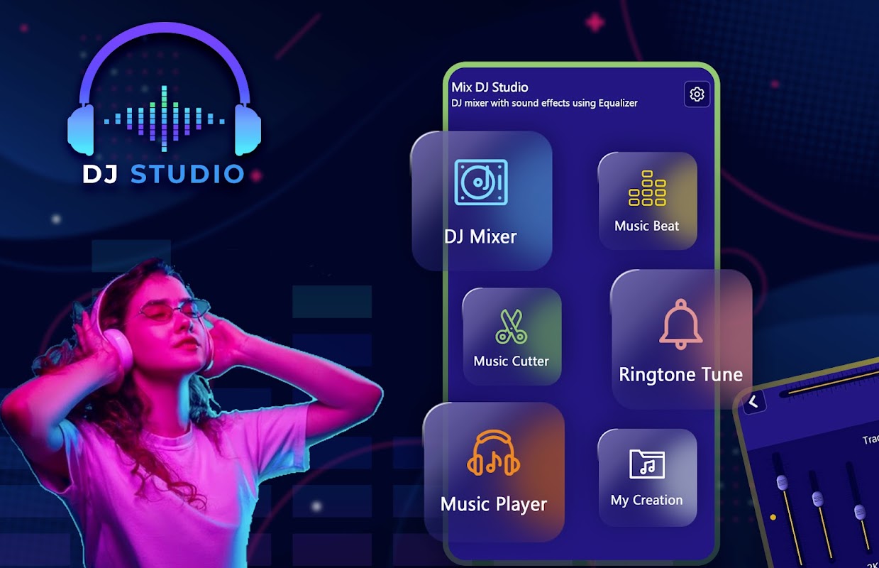 🎧 스마트폰 및 태블릿과 호환되는 DJ 가상 3D 스타일.