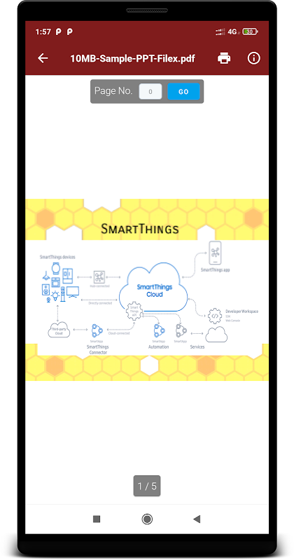 * 내장 PDF 뷰어, PDF 파일을 볼 수있는 기능을 증명합니다. 원하는 페이지 번호로 페이지를 탐색하는 옵션이 있습니다. GO 기능 만 사용하면됩니다.
