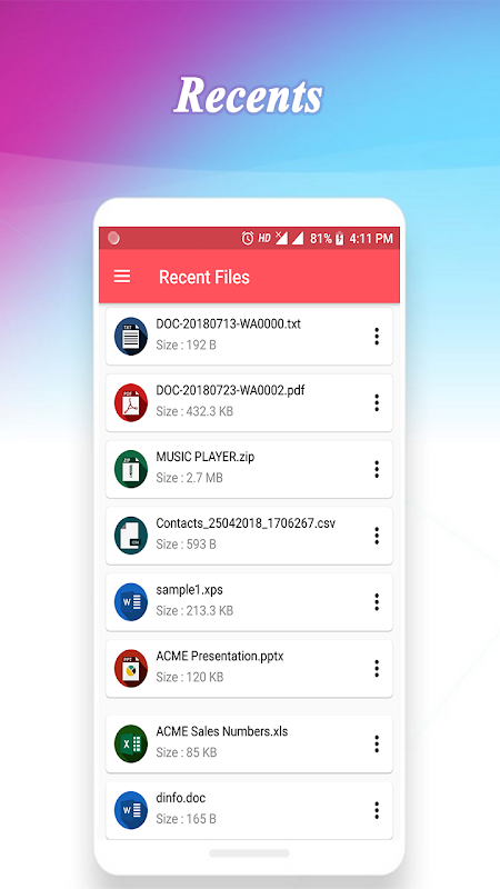 🔔 Using a Document Manager, the files that are scrambled in the mobile can be arranged in a series of documents folder.