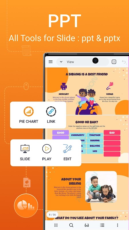 컴퓨터를 열 필요 없이 모바일로만 문서 리더에서 관리할 수 있습니다. 모든 파일을 읽고 PDF, PPT, XLS, TXT 또는 WORD 파일 형식의 모든 문서를 읽습니다.