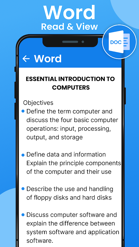 Document Reader Plus를 사용하여 Microsoft Word 문서(.docx)를 쉽게 열고 읽어보세요. 어디에 있든 원활한 읽기 환경을 위해 문서 형식과 레이아웃을 유지하세요.