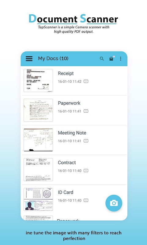 Now convert your smart phone into a mini pocket scanner and enjoy the high quality image in your device within just one touch with the best ever scanning mobile app Document Scanner Camera Scanner: Free PDF Scans. Clear Scanner lets you quickly scan any kind of documents in your office, images, bills, receipts, books, magazines, class notes and anything that needs to be there in your device within no time. This is the fastest means to get the scanned document in the highest quality and convert it immediately into PDF or JPEG format so that you can share the scanned document, image, books, bills, important notes or any kind of paper that you can think of.