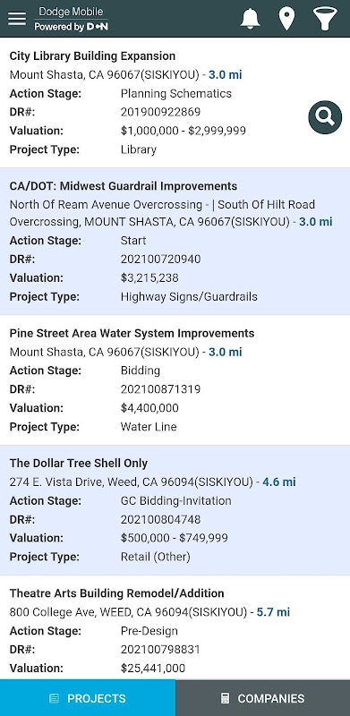 • 현재 위치 근처의 프로젝트 및 / 또는 회사를 대상으로합니다