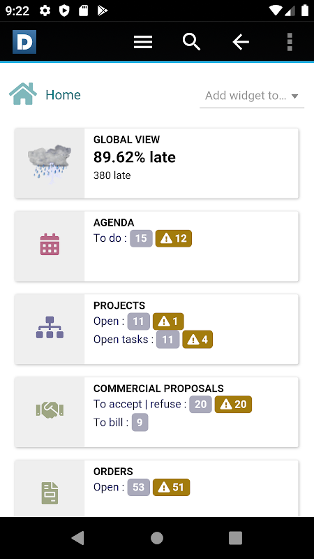 - DoliDroid는 기본 웹 애플리케이션보다 사용하기 쉬운 메뉴 시스템을 제공합니다.