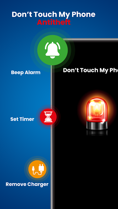 내 휴대전화를 만지지 마세요. 누군가가 내 휴대전화를 만지려고 할 때 휴대전화를 보호하는 도난 방지 경보 휴대전화 보안 앱입니다. Don't Touch My Phone 앱은 최고의 도난 방지 보안 동반자입니다. 이제 가장 크고 효과적인 알람 보호 벨소리로 모바일을 보호할 수 있습니다!